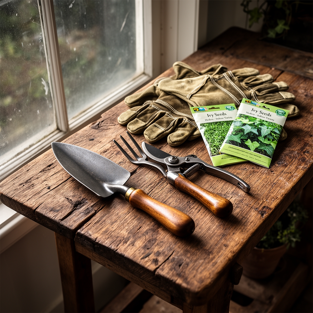 Sharp bypass pruners with stainless steel blades prevent tissue crushing that invites fungal colonization. Sterilize blades between cuts using 70% isopropyl alcohol to avoid spreading bacterial leaf spot. A rooting medium of 2 parts perlite to 1 part peat (pH 5.5-6.5) accepts cuttings from pruned stems. A balanced 10-10-10 NPK liquid fertilizer diluted to quarter strength supports recovery without forcing excessive elongation. Ivy thrives in slightly acidic conditions where cation exchange capacity allows efficient uptake of nitrogen, phosphorus, and potassium. Organic alternatives include 4-4-4 composted poultry meal applied as a top dressing at 1 tablespoon per 6-inch pot diameter. Rooting hormone powder containing 0.1% indole-3-butyric acid accelerates adventitious root formation on cuttings, though ivy roots readily without supplementation.
